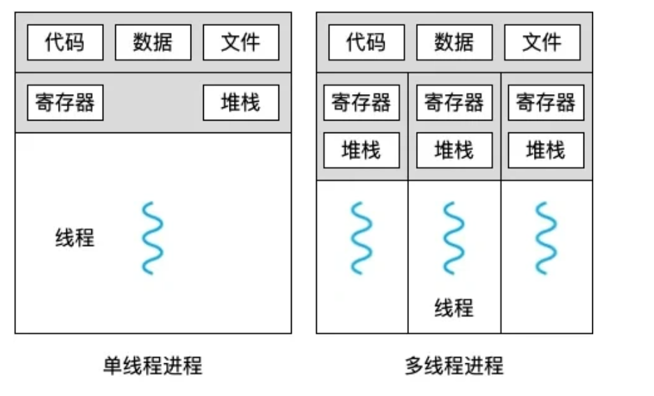 关键差异 | 资源独立(内存、文件描述符等),切换重 | 共享进程资源,仅私有栈 / 寄存器,切换轻量 |